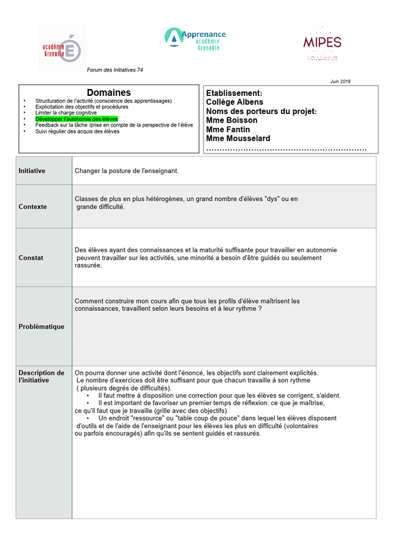 Initiative 1 Forum Cge Albens Posture Prof Vs Autonomie Elèves